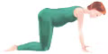 Crouch on your hands and knees with your back in a relaxed position without letting your spine sag. Keep your head straight and in line with your spine. Pushing the small of your back upwards, tighten your abdomen and buttocks and drop your head down. Gradually relax and return to the original position. Repeat 3 or 4 times. This exercise is helpful in relieving the pressure that the uterus places on your spine.