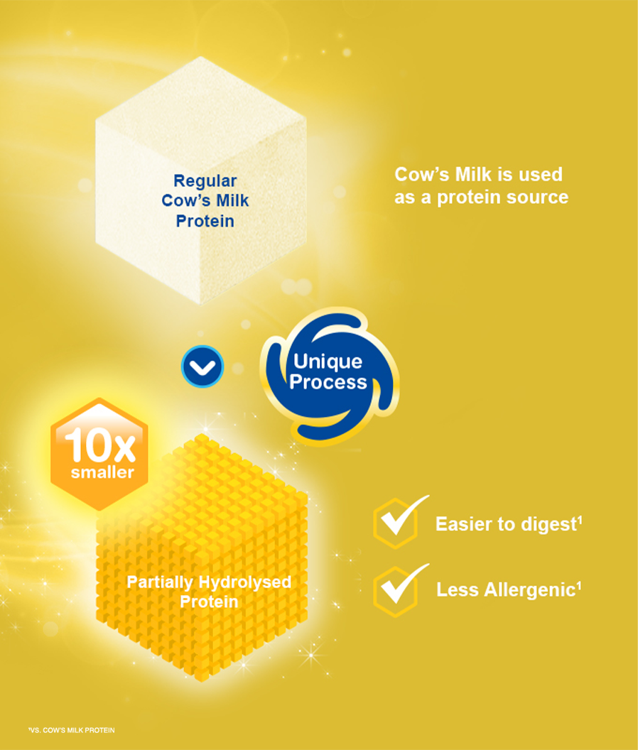 But, is regular cow’s milk good enough? Not all protein for children are the same. There are intact protein and Partially Hydrolysed Protein which is cow's milk broken down to smaller pieces for easier digestion. Let’s take a look at how Partially Hydrolysed Protein is produced.