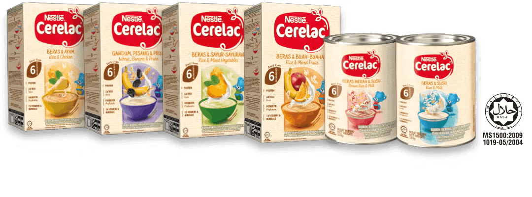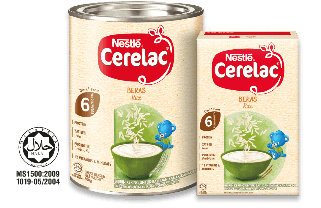 Nestlé CERELAC Infant Cereals in Malaysia contain probiotics. CERELAC is also made with a special technology called CHE (Cereals Hydrolysed Enzymatically) which breaks down carbohydrates into smaller components.
