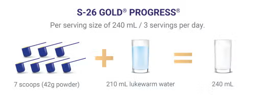 S-26 GOLD PROGRESS Step 3 is recommended for toddlers between 1 to 3 years old. Your toddler can start consuming S-26 GOLD PROGRESS Step 3 when they are 1-year old and above. We recommend that you speak to your healthcare professional about how to feed your child and seek advice on when to introduce this product.