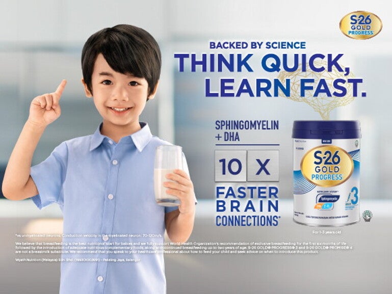 S-26 GOLD PROGRESS growing up milk formula is backed by Science, and formulated with Sphingomyelin & DHA.