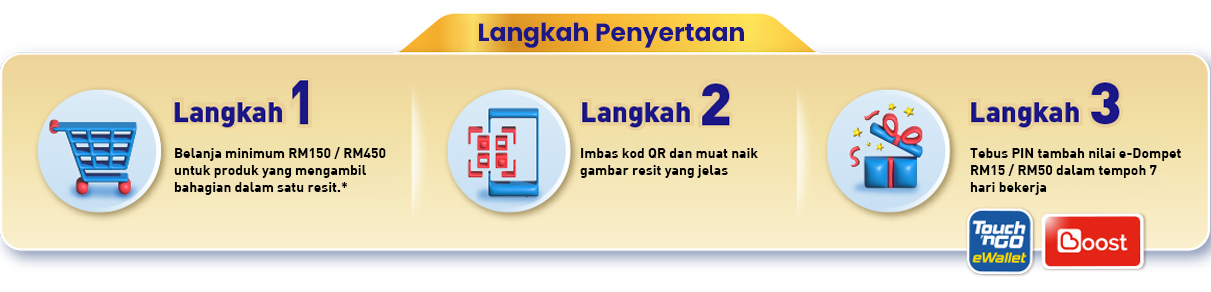 Tebus PIN tambah nilai e-Dompet RM15 dengan pembelian atas RM150