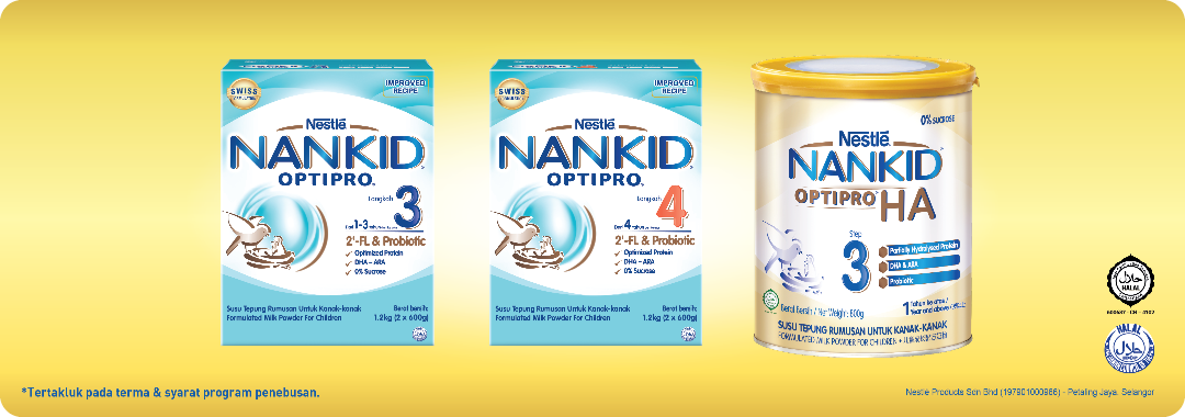Tier 2: Beli 3xNANKID OPTIPRO 3 [1.2kg] atauNANKID OPTIPRO 4 [1.2kg] atauNANKID OPTIPRO HA 3 [800g] | RM 35 Touch ‘n Go eWallet |